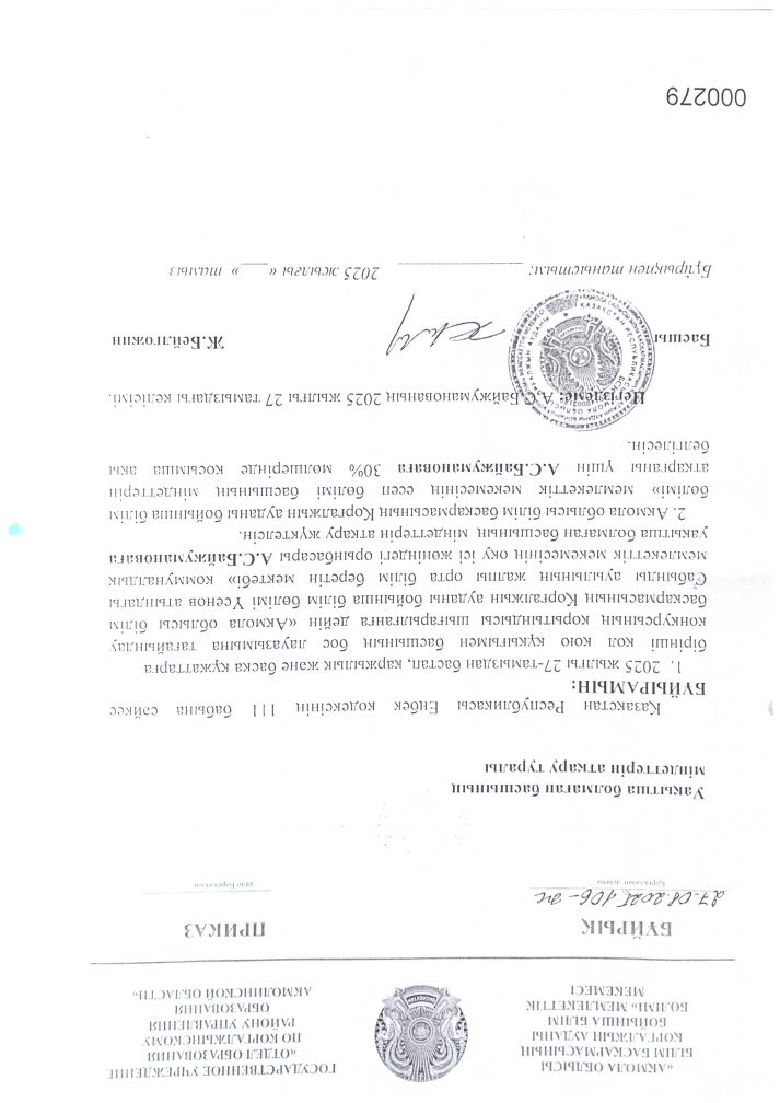 Басшының міндетін атқарушыны тағайындау туралы бұйрық